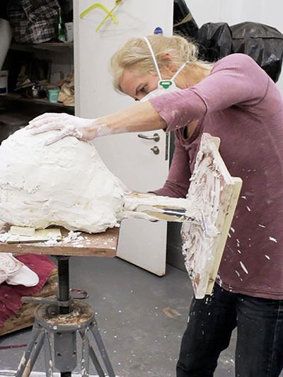 When we meet up in her studio a week later I’m anxious to see if what Marianne has crafted is as I’d remembered and if it will feel as meaningful as it had a week earlier. She carefully unwraps the plastic dressing that has kept the clay supple and I can already recognise the shape of my head, the lips, the forehead. She’s even captured the curious flat plateau at the back of my skull.