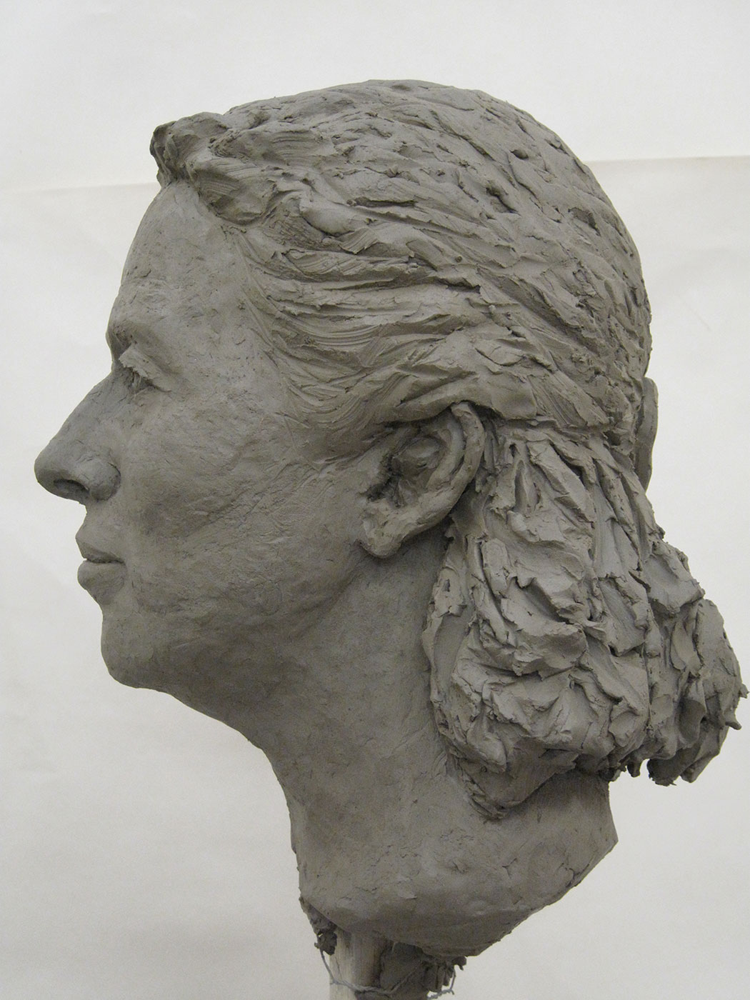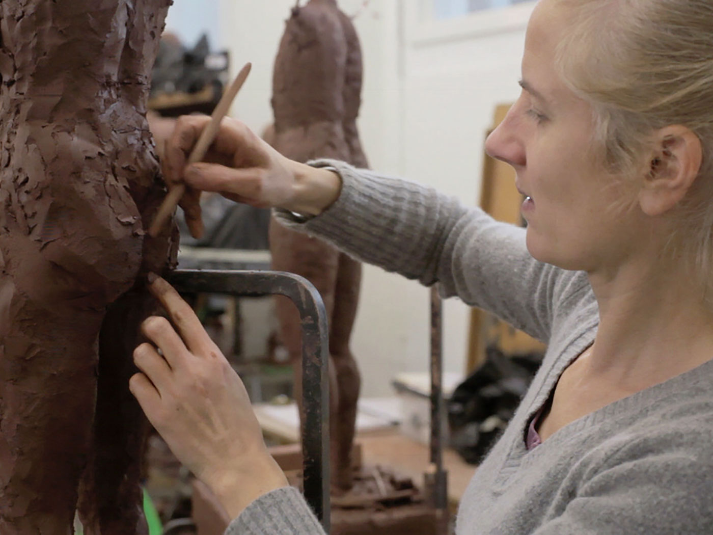 There’s a long pause. She looks at the clay figure as if for answers, examining its form, the curves, lines and emotions she’s shaping.